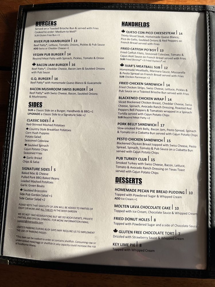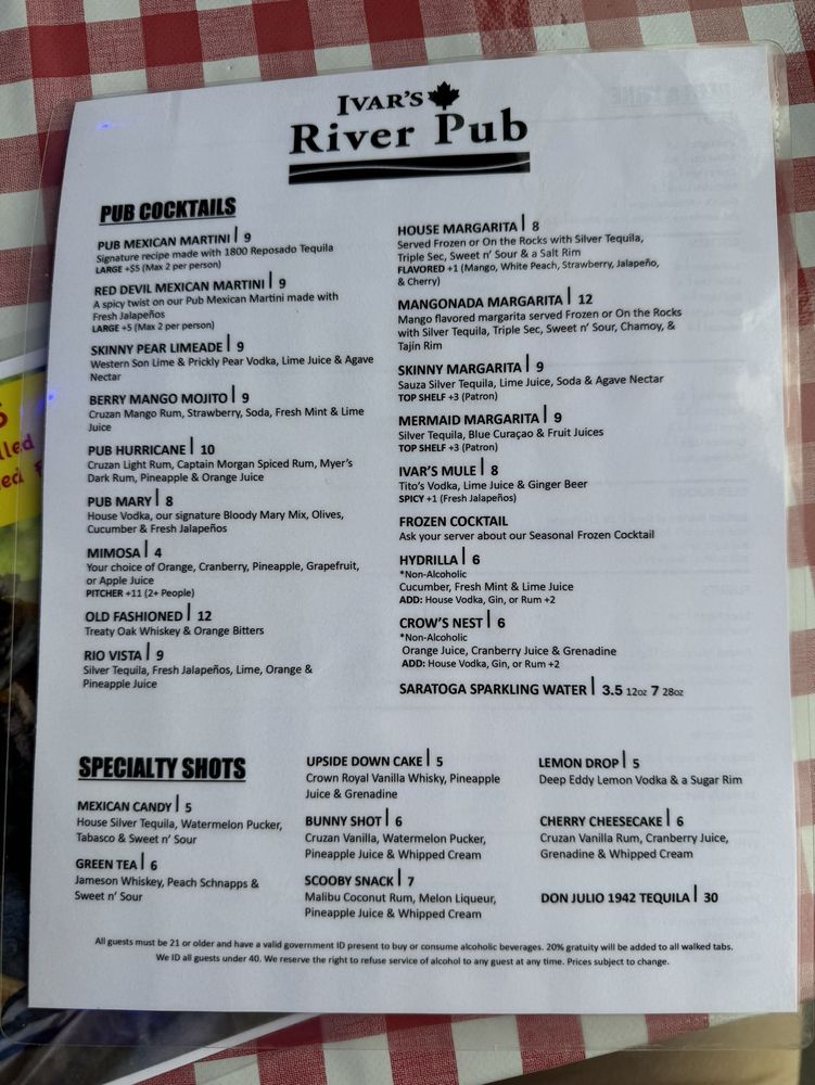 Ivar's River Pub Menu